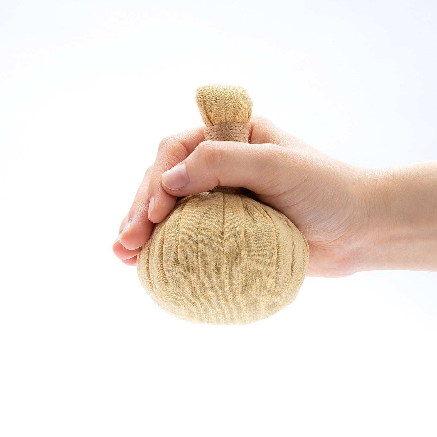 フルーツ&ハーブボールを水で濡らし、温めて、身体のお好きな箇所に押し当てて使用します。